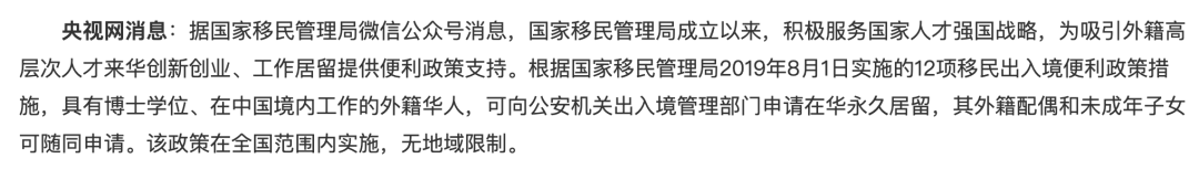 根据国家移民管理局2019年8月1日实施的12项移民出入境便利政策措施,