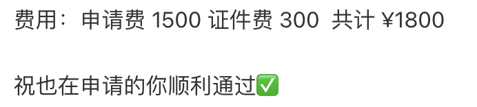 “申请费¥1500,证件费¥300,共计 ¥1800。”