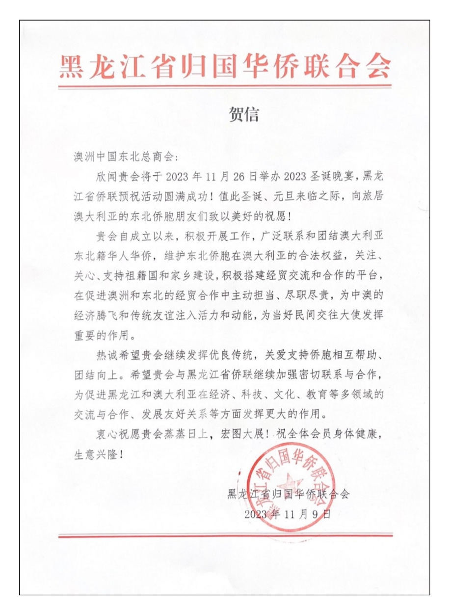 11月26日,澳洲中国东北总商会(简称“东北总商会”)圣诞晚宴在索菲特悉尼温特沃斯酒店(SOFITEL SYDNEY WENTWORTH)圆满举办。