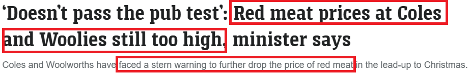 在肉价这件事上,尽管近期澳洲牲畜价格大幅下跌,但两大超市的肉价,并没有反映成本的大幅降低。