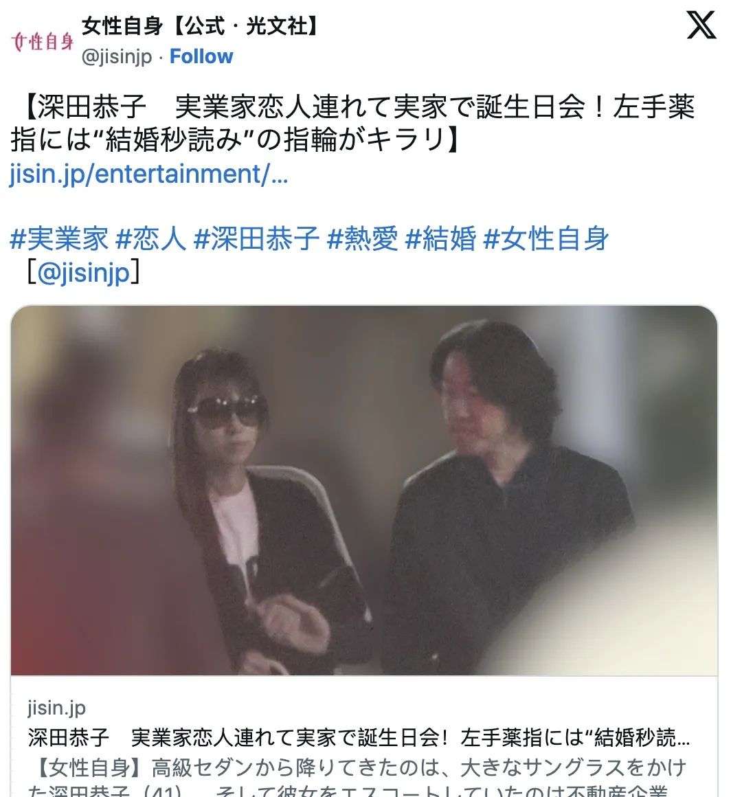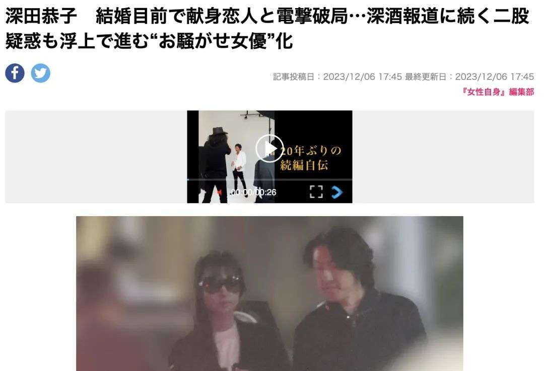 这回是日本国宝级女星——41岁的深田恭子,和她交往五年的亿万富豪男友…
