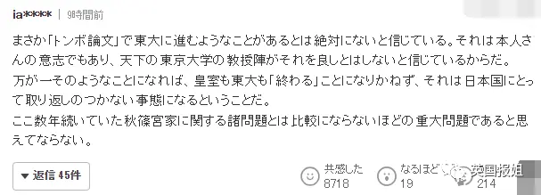 “我相信绝对不会有因为‘蜻蜓论文’就进入东大这样的事,如果真的发生了,那皇室和东大都要完,日本也要完了…