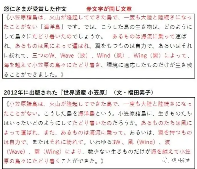 结果他写的《访问小笠原群岛》,被发现其中大段大段抄袭了2012年出版的一篇文章。