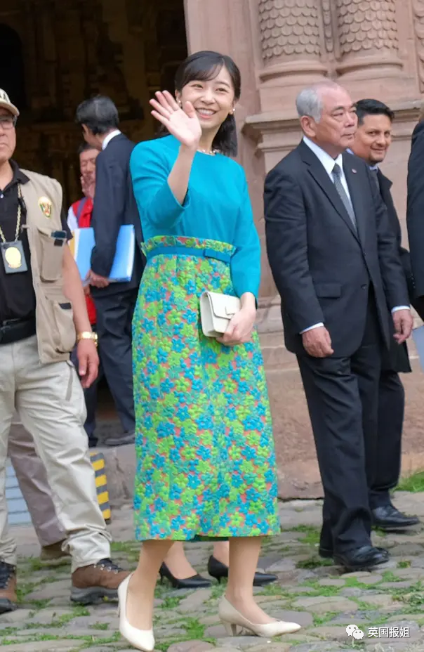 不过更让人们关注的是,她拜会秘鲁总统时穿的礼服。当天她穿了姐姐真子穿过的翡翠绿色礼服,还佩戴了真子2019年出访秘鲁时戴的同一款胸针。