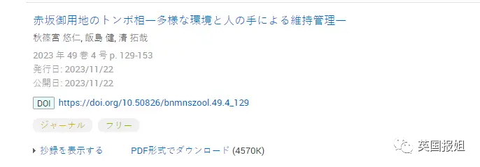 “论文中总结了从2012年开始的11年间,赤坂御用地内蜻蜓类的调查结果。