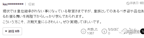 这样的人才应该是下一任天皇,希望一定能实现。”