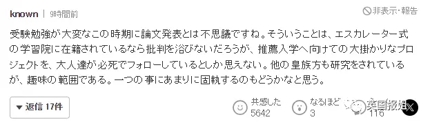 王室独苗苗、年仅17岁的悠仁亲王则是发了一篇学术论文,和他合著的都是顶级学者,而还在上高中的悠仁却是第一作者。