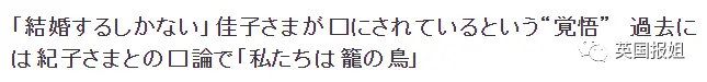据报道,佳子从高中开始就一直说“想离开皇室”,她曾在和母亲纪子妃争吵时感叹自己过着如同“笼中鸟”一般不自由的生活。