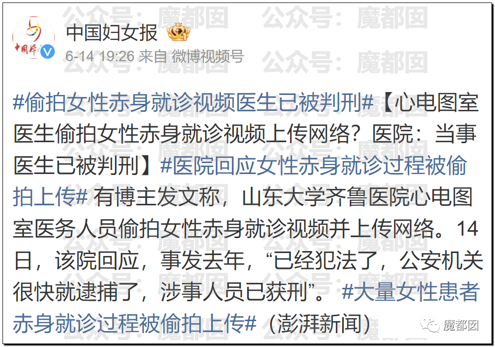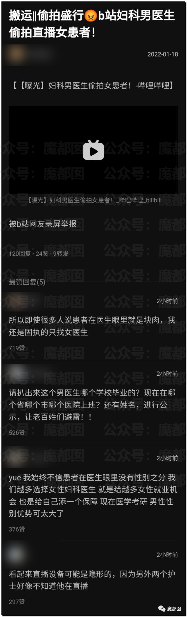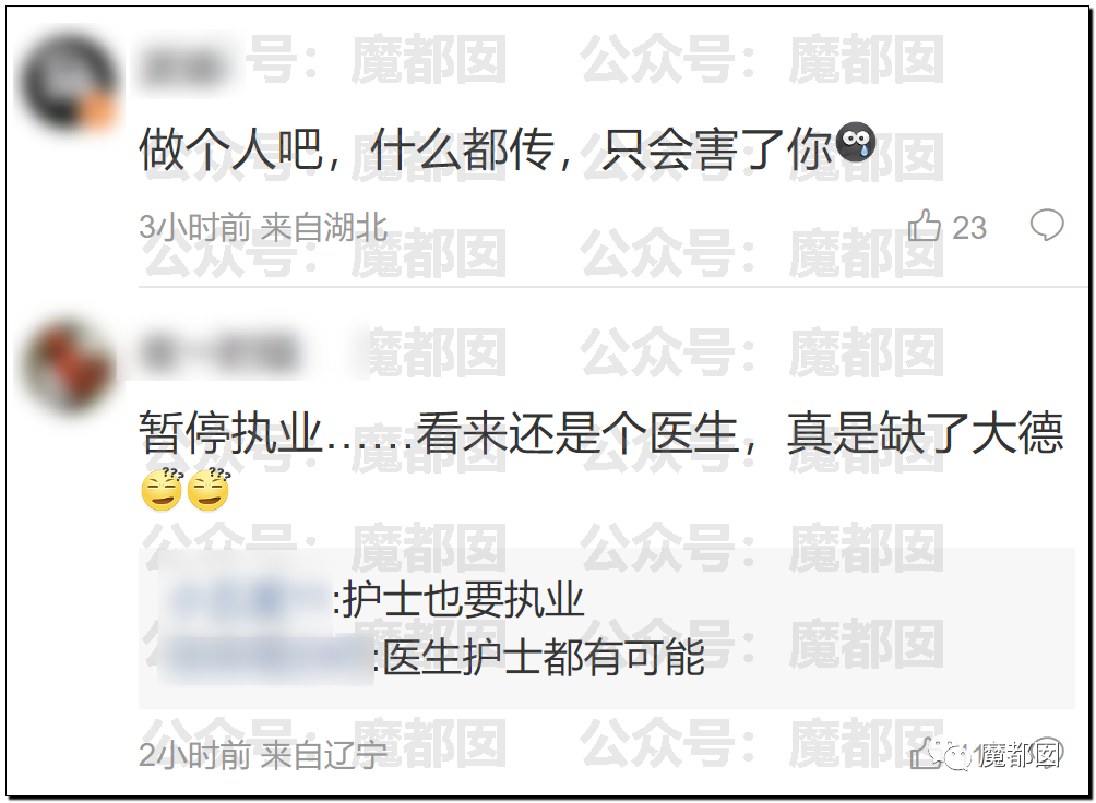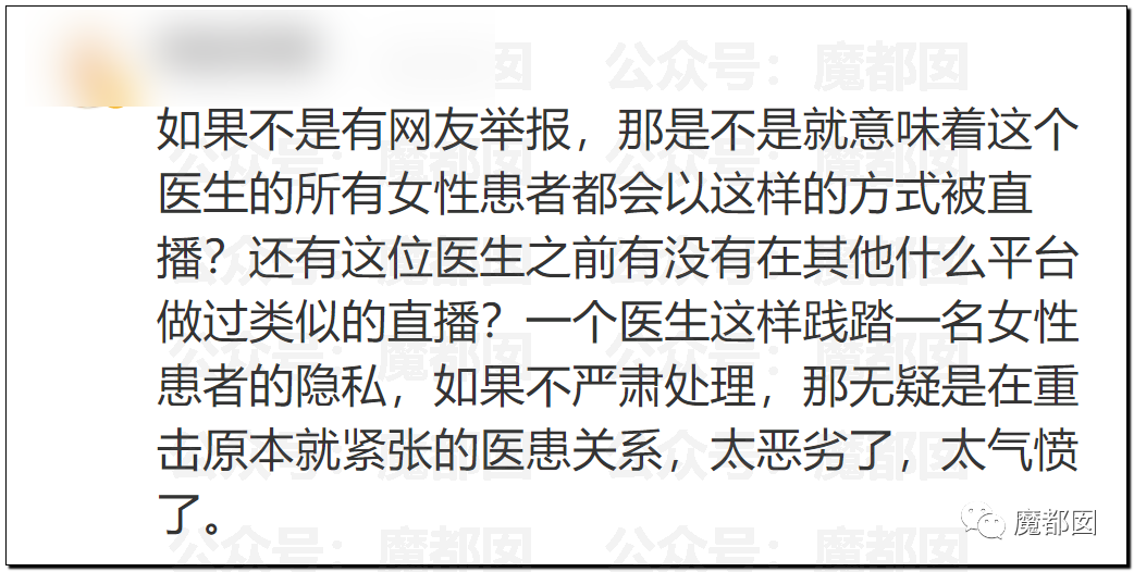 这个是现场开直播的,虽然手法不同,但是本质上和那些破解摄像头上传的没什么区别。我们无法想象恶臭到极致的行为竟然发生在一个高学历的正规医院的医生身上。网友都爆了: