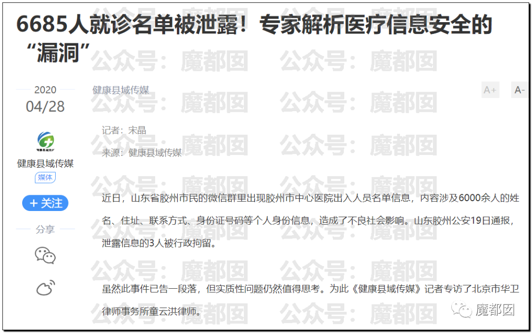 网上类似的案例不胜枚举,例如2020年某地六千多人的就诊名单被泄露:
