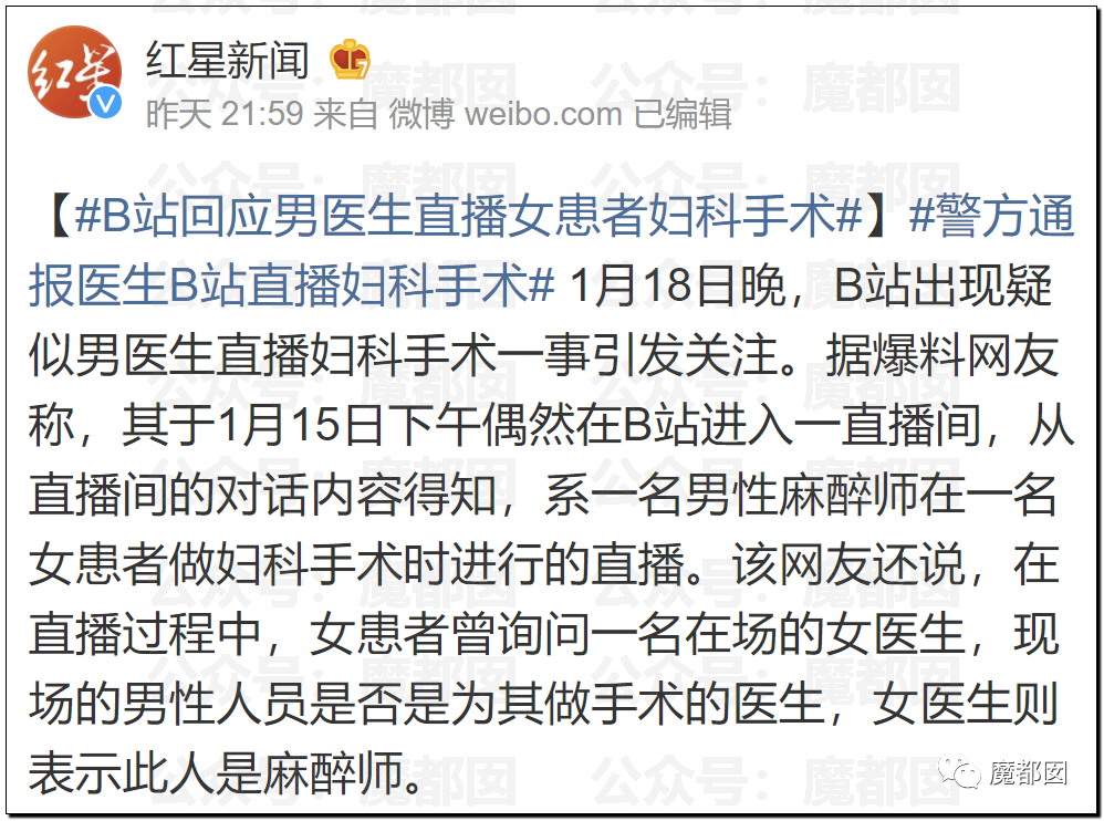 不过,这事情中的妇科手术直播似乎不是手术医生在与同行交流学习,更重要的是,这位医生在没有取得患者知情同意的情况下,在公共视频平台进行妇科手术的直播,女病人的私处被彻底曝光,严重损害了病人的权益。