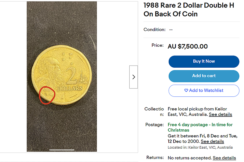 最近,就有一款面值2澳元的硬币在网上被炒到了数千澳元。