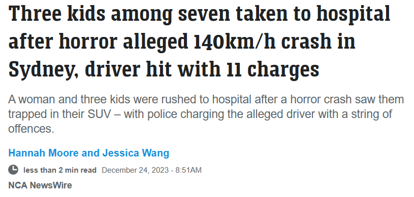 就在这起车祸发生的前一天凌晨,悉尼还发生了一起恐怖车祸,