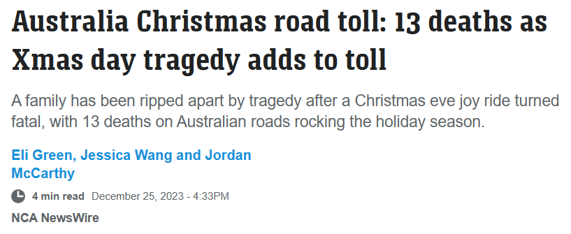 今天是圣诞节,相信不少妈妈已经开始享受圣诞节假期了。然而,就在这几天,随着出行人数变多,澳洲发生了多起车祸,
