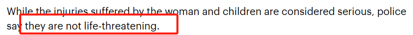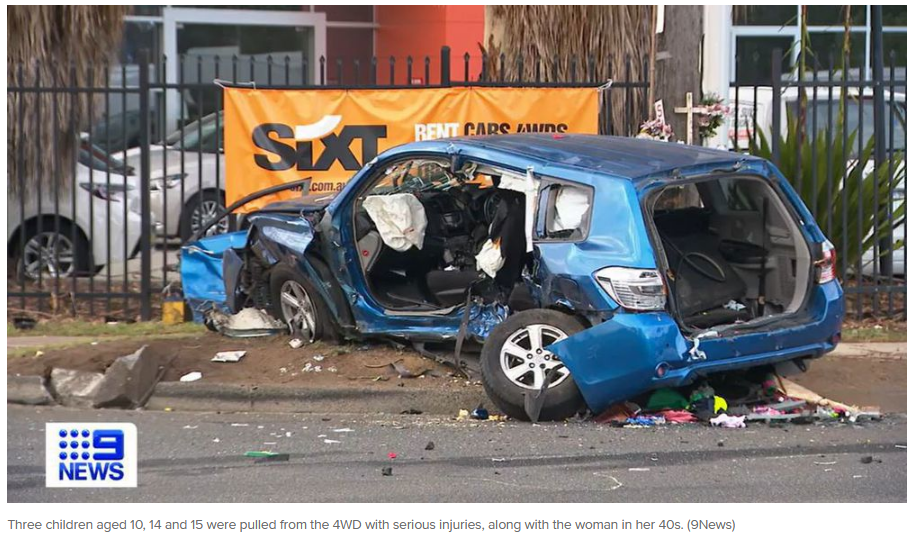等医护人员赶到现场后发现,在SUV中有一名40多岁的女子和三个年龄分别为10岁、14岁及15岁的孩子,这四人受伤严重,被紧急送往了Westmead的多家医院接受治疗。