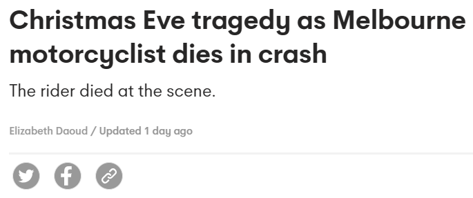 在前天,维州有一名摩托车手在行驶时失控,于下午2点左右撞上护栏后死亡。
