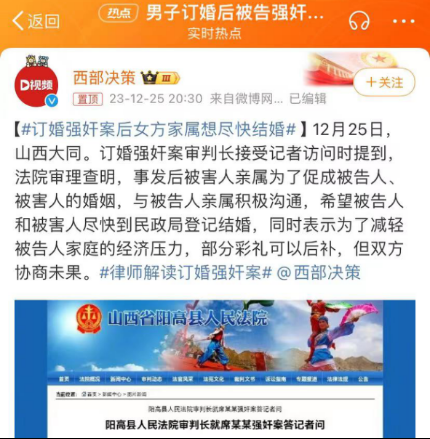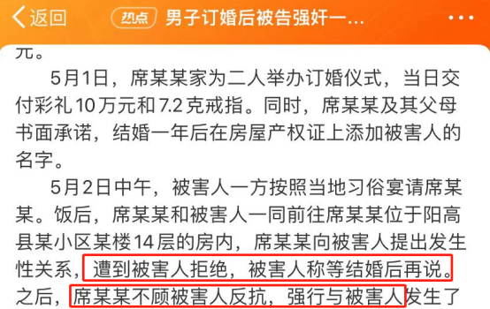 昨天,冲上热搜第一的“订婚强奸案”闹得沸沸扬扬。