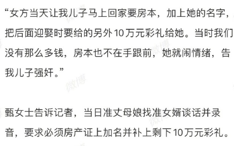 男方母亲甄女士是这么解释的: