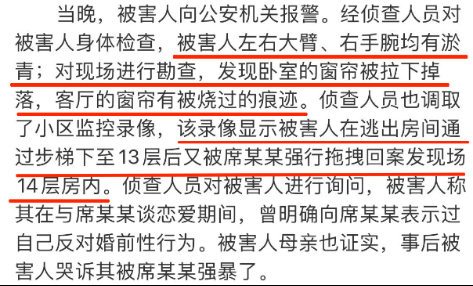 很多人给女方泼脏水的时候,却不知道,她带着满身伤痕,尖叫着喊救命,挣扎着跑下楼却又被席某拽回去的时候,内心该是多么沉重、绝望和无助?