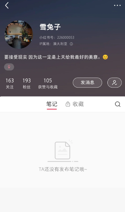 这个账号注销以后,网友又开始了搜索,结果找到了一个IP同样在澳洲,签名同样是要接受现实,因为这一定是上天给我最好的美意的账号,不知道是删光了账号内容还是没有发布过内容。