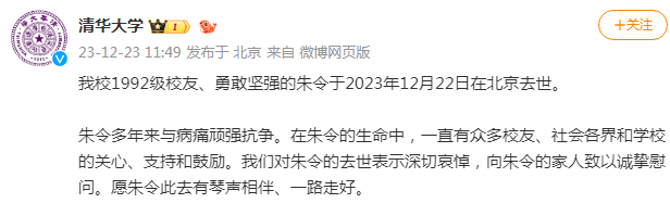 为此,清华大学在官方微博账号上也发布了悼文。
