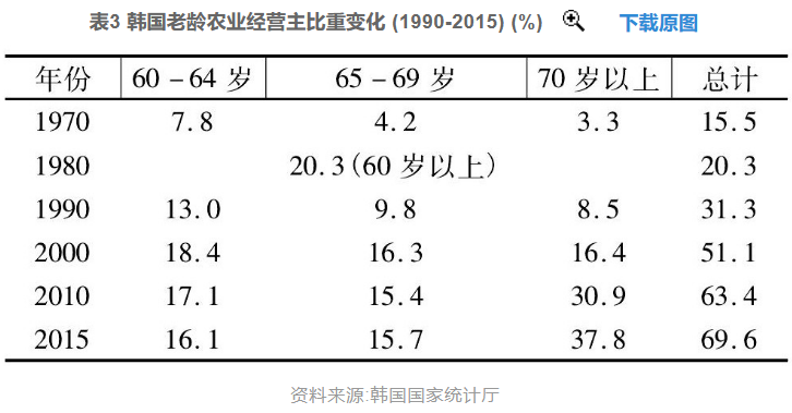 图源:周娟.老龄化背景下农业的可能性及其意义——以韩国农业为例[J].人口与发展,2017,23(06):36-45.