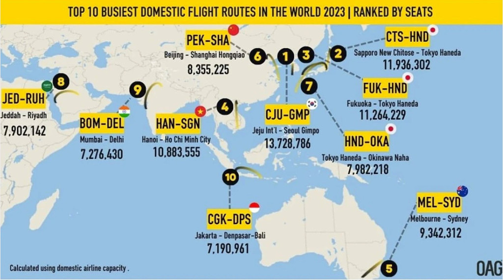 收藏全球最繁忙航线公布: 墨尔本出发这趟境内航班, 排名世界第5! 第一名往返这两个亚洲国家
