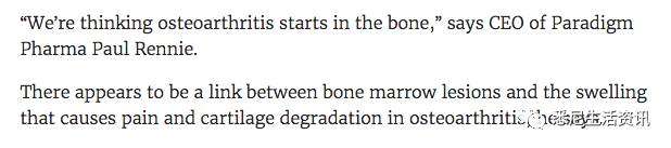 其实,这都源于澳洲科学家刨根问底的精神。参与研发的澳洲医药公司CEO保罗(Paul Rennie)解释道:骨关节炎的根源是骨头出了问题!最基本的病因就是骨髓病变导致关节肿胀。而软骨退化等一系列问题只是让这个基本问题越来越严重。