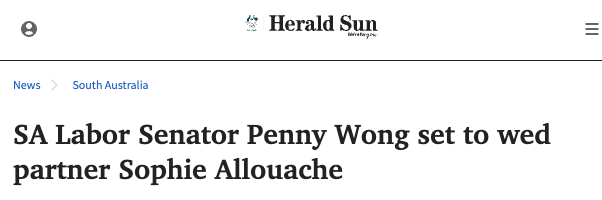 恭喜!经过多年艰苦卓绝的同性婚姻合法化改革,澳外交部长黄英贤(Penny Wong)即将与她的长期伴侣Sophie Allouache 结婚。