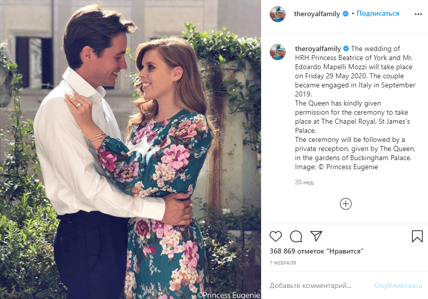 接着Edoardo 和公主的感情开启了火箭模式。俩人2019年订婚,2020年低调完婚。