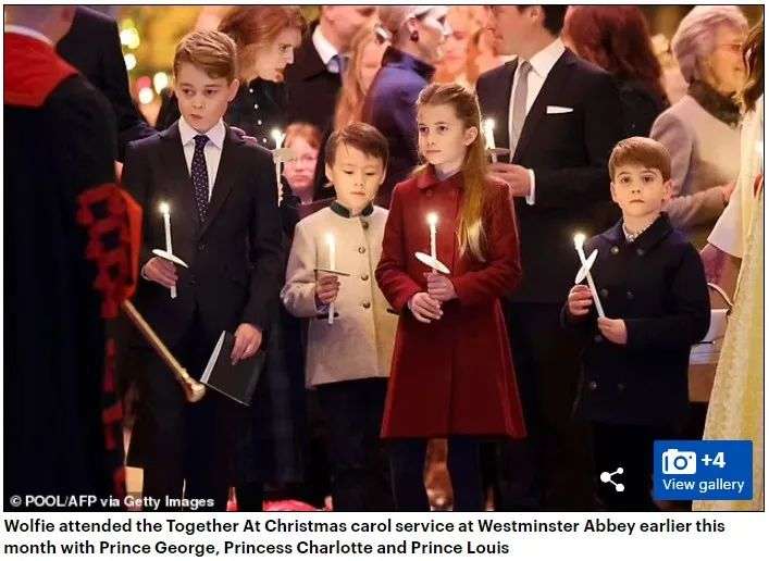 7岁的Wolfie 此前很少在皇室活动中亮相,此前即使有被拍到媒体也多会打码。