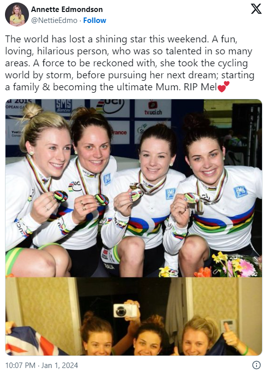 这位前职业自行车手和两个孩子的母亲的意外去世震惊了澳大利亚和全球自行车运动,并引发了许多自行车运动爱好者的悲痛。