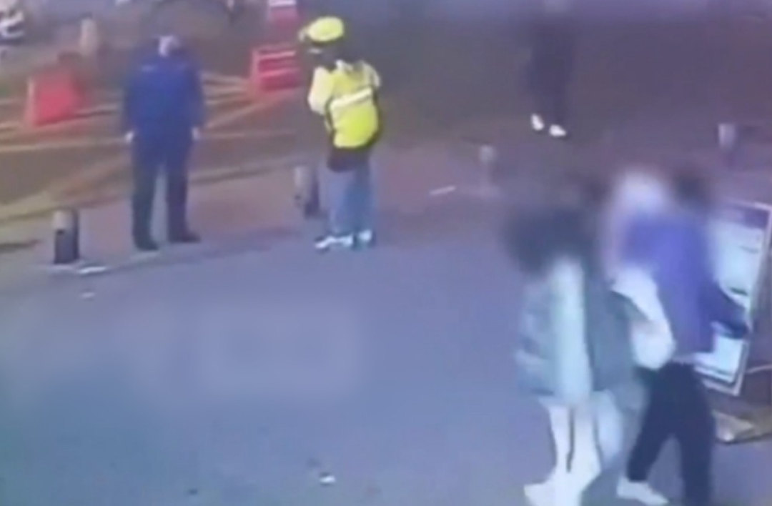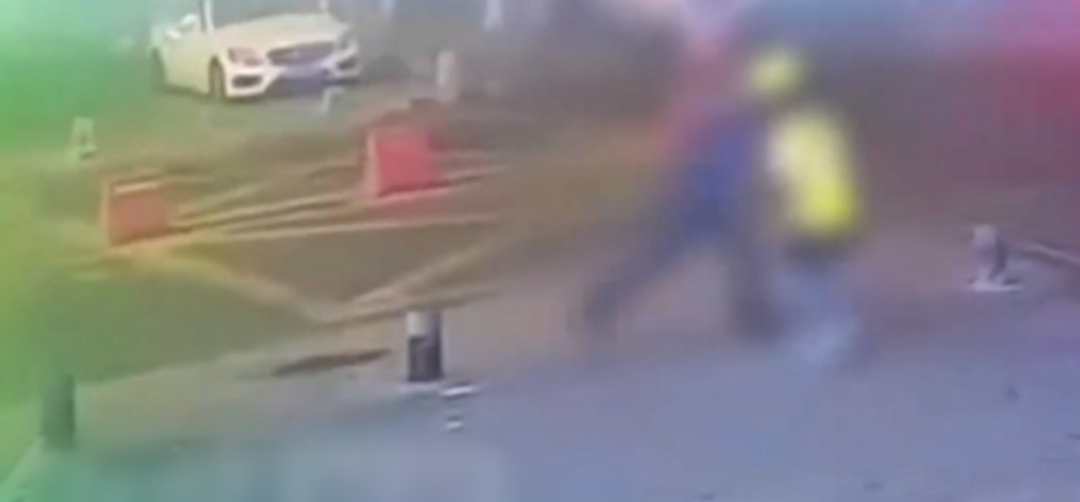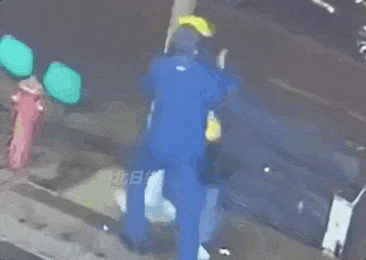 他只是不断地侧身、后退,试图躲避凶残的袭击,但疯了一样的保安随即就冲上前去。