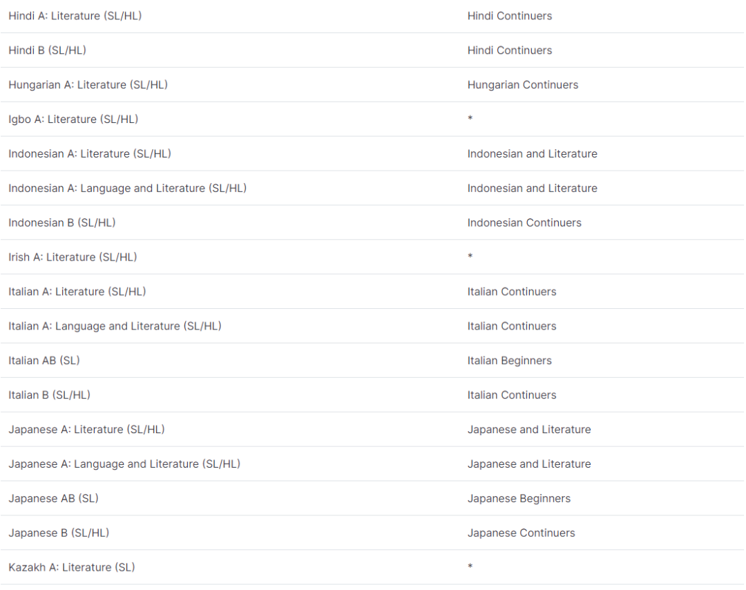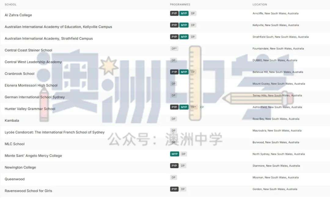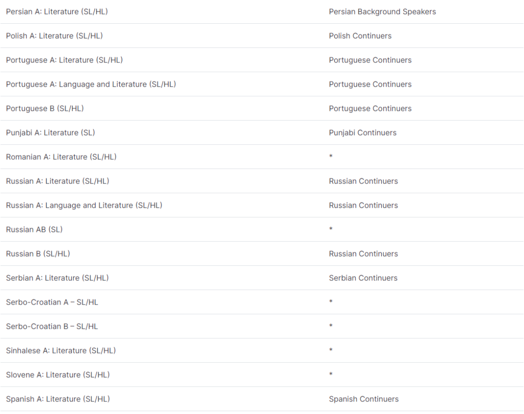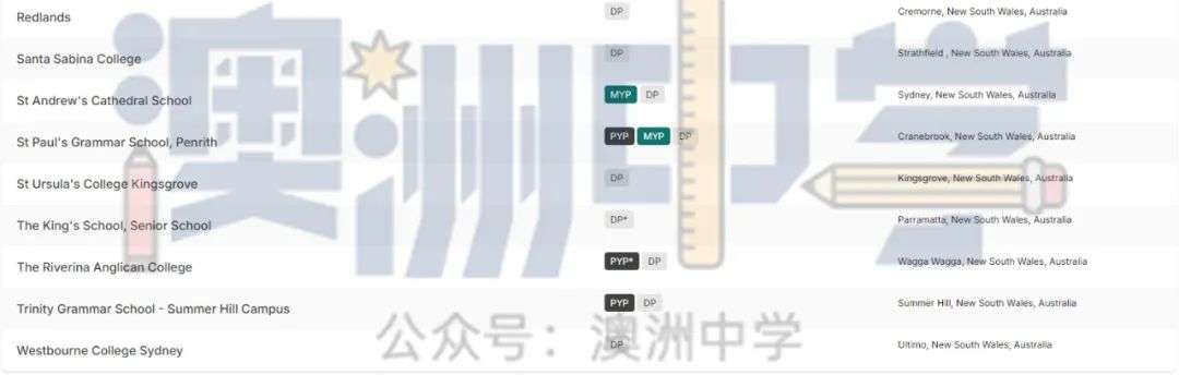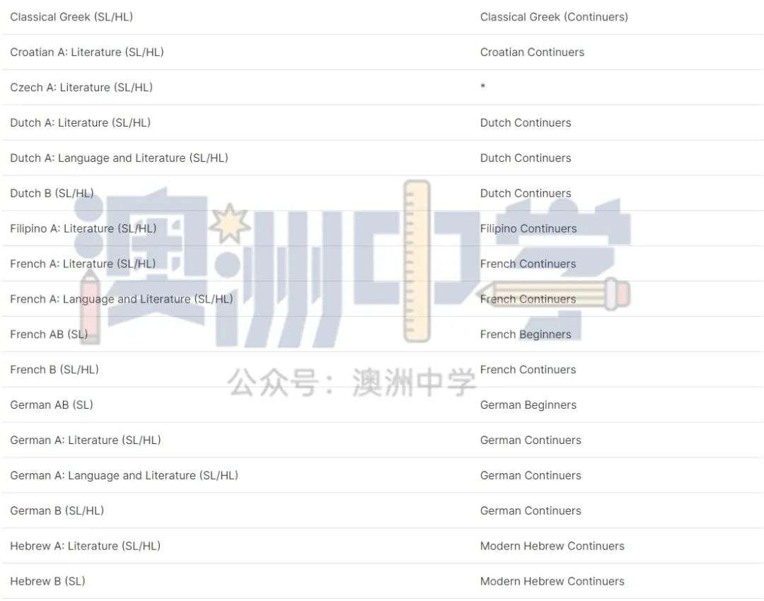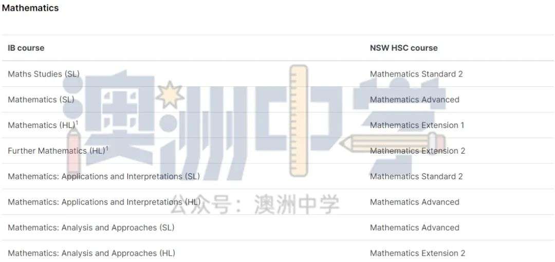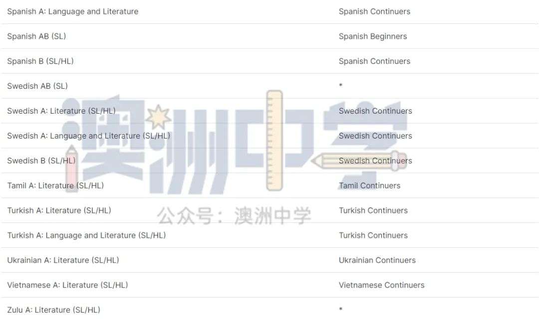 * 代表该 IB 文凭课程没有类似的新州 HSC 课程。