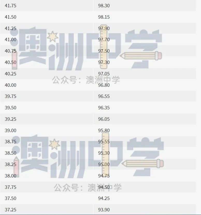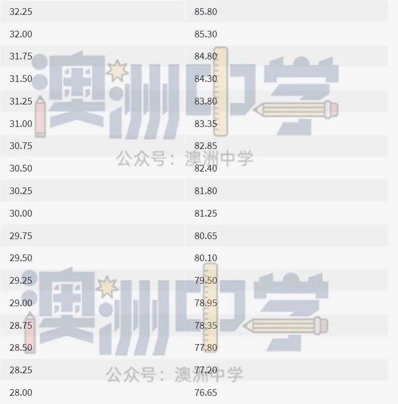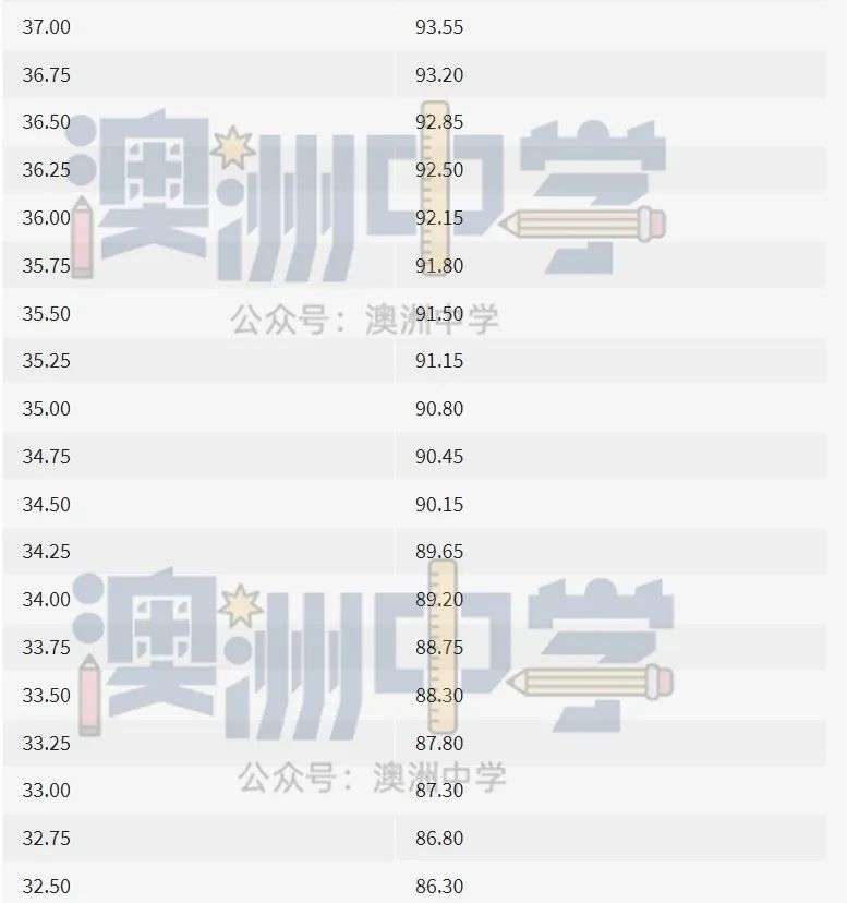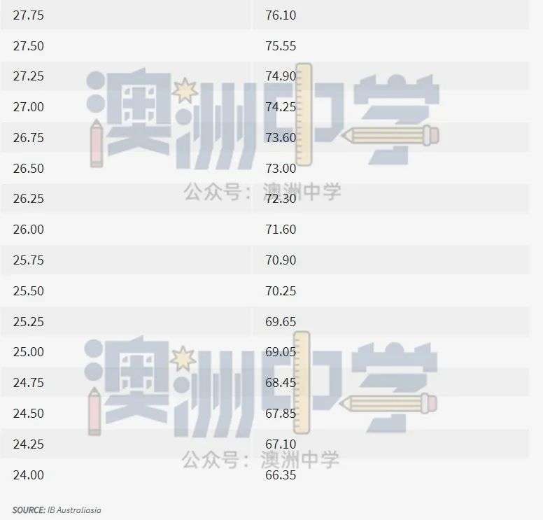 如一名学生IB裸分45,他的IB Admissions Score为45.25,那相对应的ATAR排名则是99.85,而不是往年的99.95。