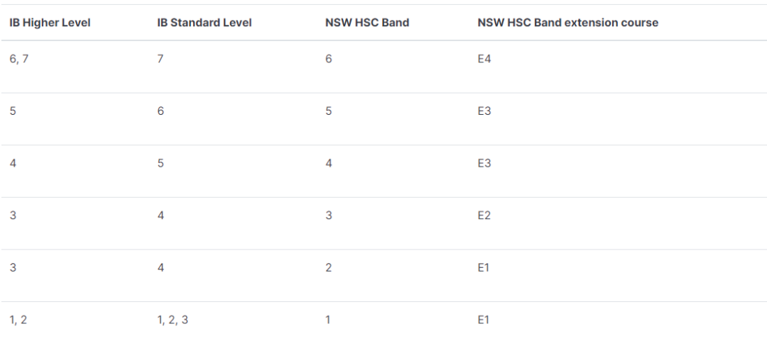 (IB和HSC相同成绩划分)