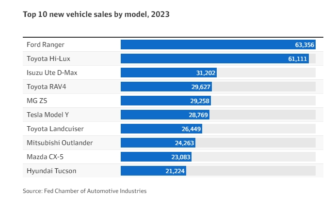 由于海外汽车制造商提高产量以清理供应链积压,澳洲去年的新车销量升至创纪录水平。但行业专家预测,随着生活成本压力的上升,2024年的形势将更加艰难。