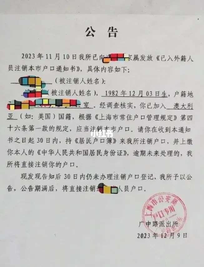 但像上面小红书博主晒出的图片那样,由当地派出所主动找上门要求其注销户籍,并在当事人没有配合的情况下公告注销,从互联网上的信息看,还是非常罕见的案例。