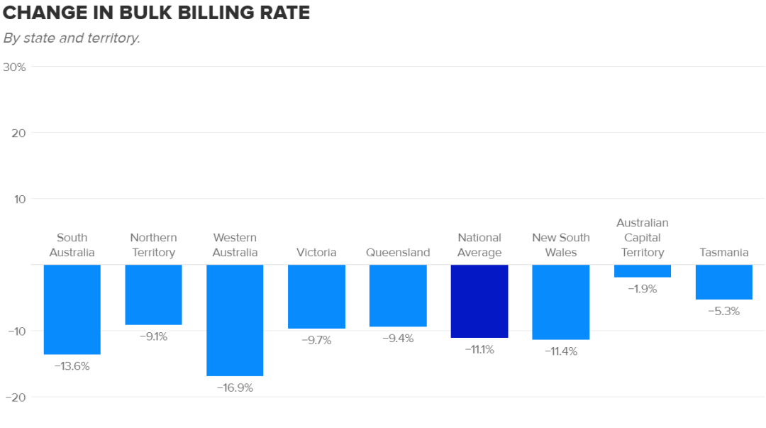 Cleanbill 的报告对近 7000 家诊所进行了调查,发现在2023年,澳洲可以全额报销的诊所数量,下降了 11%。