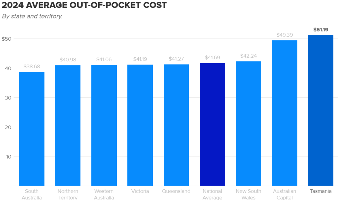 其中,塔州居民的自付费居全国之首,为 51.19 澳元。