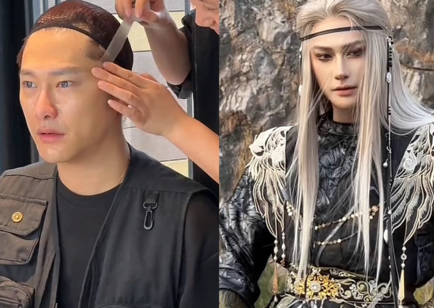 他去拜访了爆改博主@一个在版纳的化妆师兔子,兔子给他换了个头,在原本的脸上重新画出了骨骼和五官。