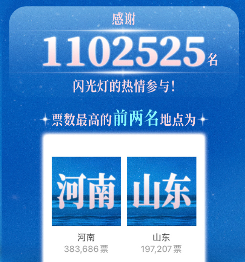 最终有110多万人参与了投票,山东和河南超越北上广,成为前两名被选中的省份。