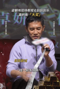 梁朝伟拿人礼物替人办事,现场开刮粉丝送的刮刮乐,还给递上来的高数书和我与地坛签名。