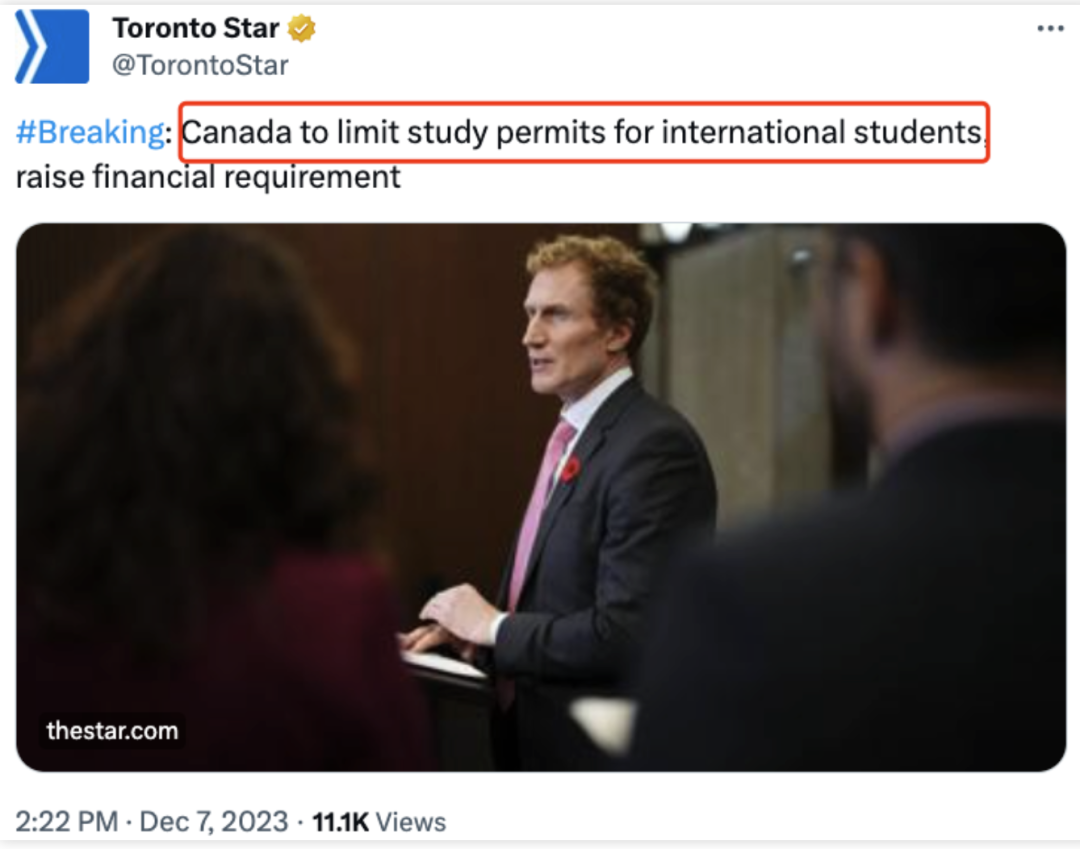 与此同时,加拿大联邦政府宣布将“大幅”限制发放学习许可的数量,以应对加拿大国际学生计划中存在的欺诈和滥用问题。