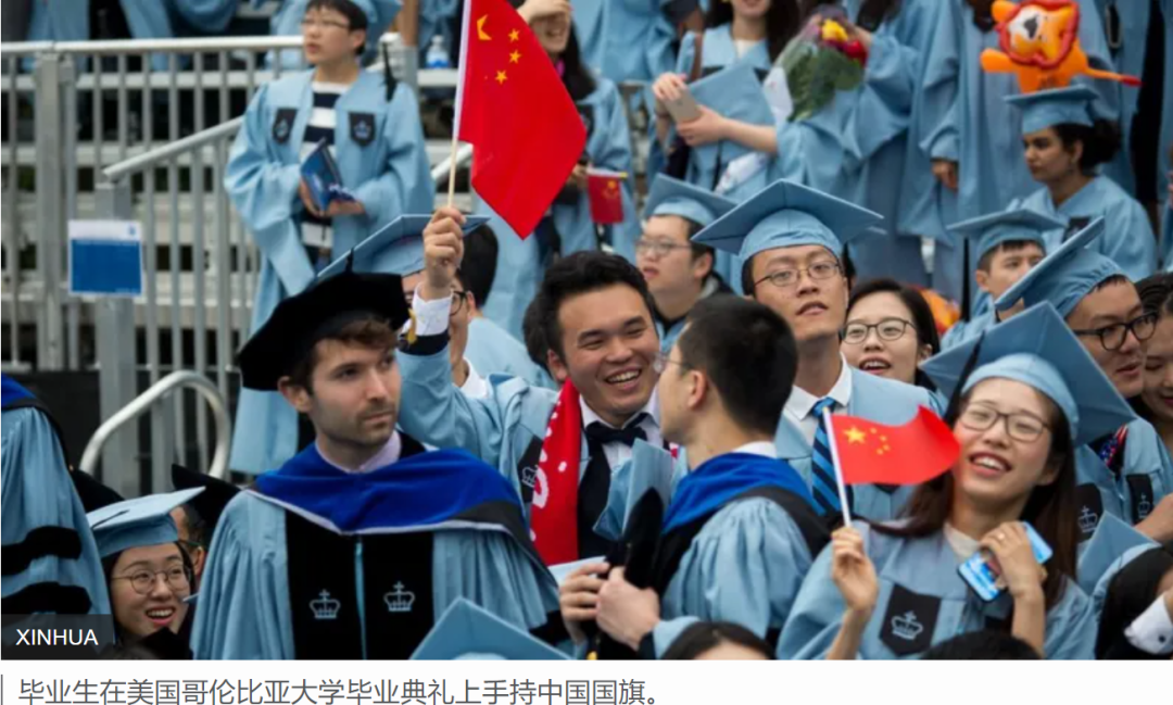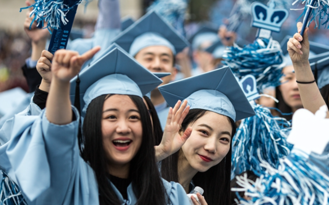 2016年5月18日,在美国纽约,几名中国留学生参加哥伦比亚大学毕业典礼。新华社