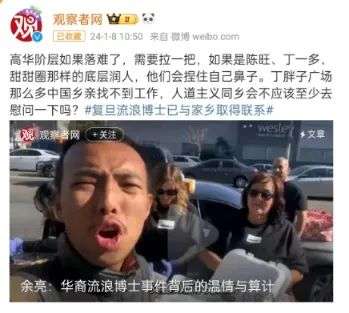 观察者网说得很好:在美国还有很多混得不好的中国乡亲,这些人道主义的同乡会不应该至少慰问一下吗?