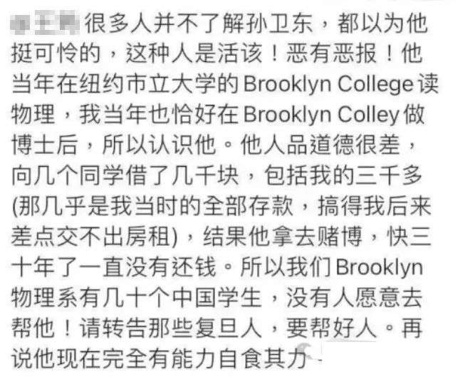 复旦大学美国校友会确认,这名姓孙的流浪博士,确实是复旦校友。
