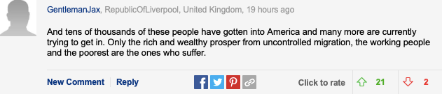 “数以万计的人已经进入美国,或者正在进入。只有富庶阶层的人在这种非法移民中继续繁荣下去,那些底层和工薪阶层都是受苦的人。”