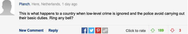 “这就是当一个国家不解决低级别犯罪时发生,警方不效力的后果,对剩下的国家有警示作用了吧?”
