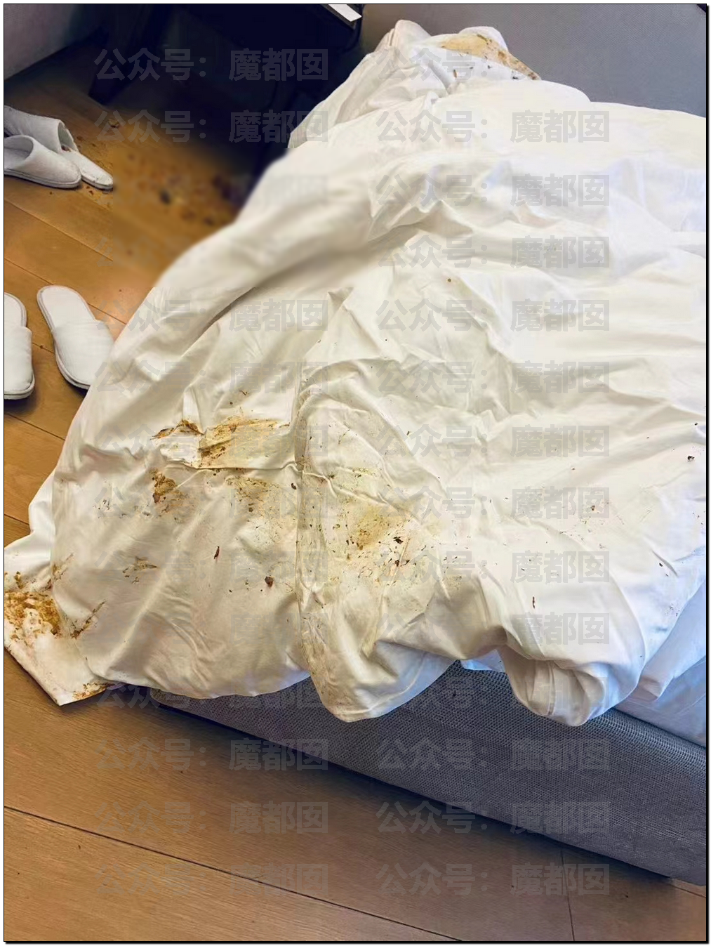 我们前段时间写过那个女生在床上拉屎撒尿的文章,今天我们再次看到……床单上大片的都是污渍,可以想象现场是一种什么样的场景……